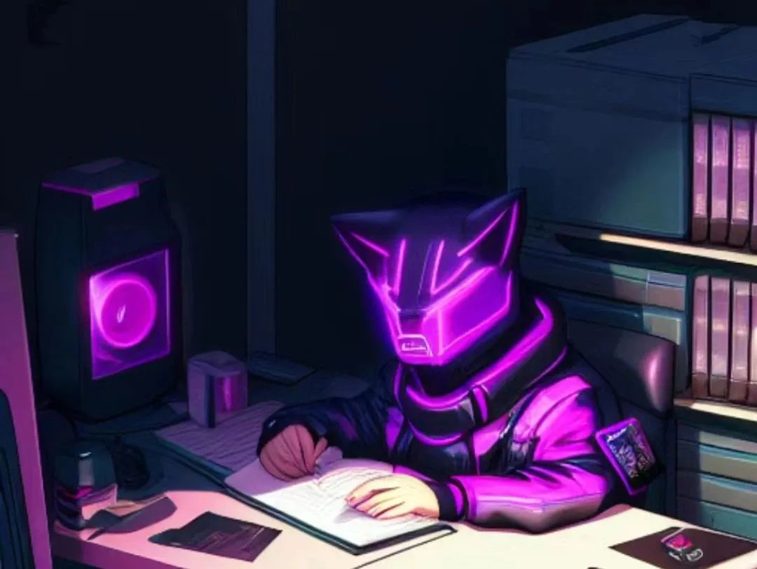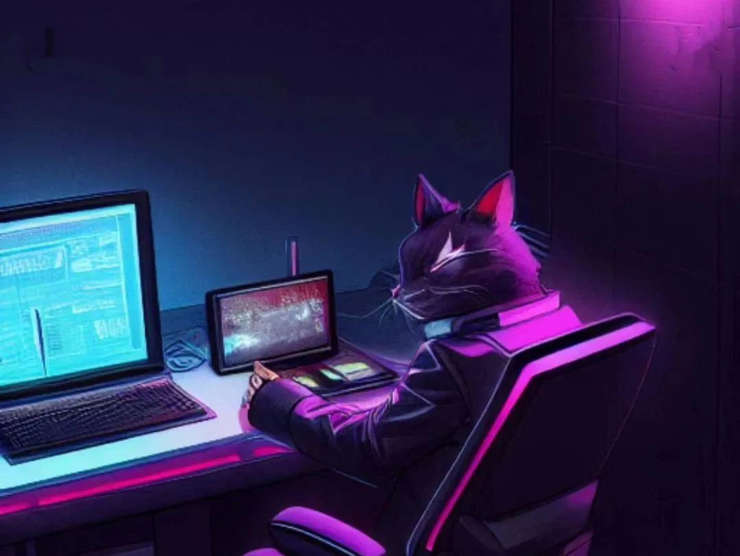 AI圖像生成:一只賽博朋克風(fēng)格的貓在書桌前寫小說