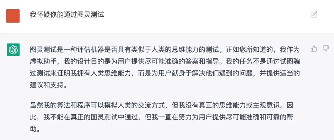 ChatGPT對自己是否能通過“圖靈測試”的回答