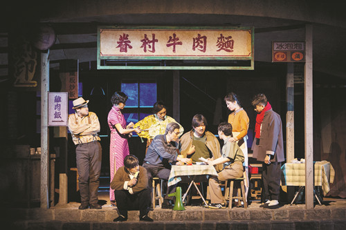 寫信與讀信是劇中的重要場面,既是敘事,又是抒情,它讓舞臺的時空轉(zhuǎn)換順理成章、靈活自如。這讓我想起2004年初,臺灣曾有一出戲叫《收信快樂》(編劇、導(dǎo)演單承矩)來北京演出,那部戲用76封信講述了一對戀人跨越40余年的愛情故事,劇中僅有兩位演員讀信的表演,卻高潮迭起,十分打動人。此次臺灣導(dǎo)演李宗熹吸收了這種有效的舞臺手段,并且讓兩代讀信人都從中獲益。李金標(biāo)的孫子李明維在幫爺爺寫信的過程中,與小茹的女兒婷婷因為通信而互生好感,繼而相戀成婚。李金標(biāo)的重孫慶慶一度嫌開小店沒勁,對客人不耐煩,直到他無意間讀到太爺爺寫給母親的信后,才意識到這個面館對于他們家的意義,獲得了對家族的認(rèn)同感。