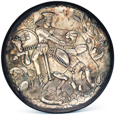 薩珊王朝帝王狩獵紋鎏金銀盤。