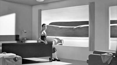 如果說,美術(shù)電影是對繪畫制作過程及畫家人生經(jīng)歷的再現(xiàn),是繪畫對電影的“進(jìn)入”,那么奧地利導(dǎo)演古斯塔夫·多伊奇的電影《13個(gè)雪莉:現(xiàn)實(shí)的幻象》(2013)應(yīng)當(dāng)是影像對繪畫還原的一個(gè)極端案例,影片不僅“入畫”,甚至“造畫”。多伊奇非常嚴(yán)謹(jǐn)?shù)匕嵫萘爽F(xiàn)代藝術(shù)家愛德華·霍珀的13幅城市生活風(fēng)景畫,從構(gòu)圖、布景、打光、人物等方面等比還原了畫作場景,仿佛影像對繪畫的全面擬真。劇組搭建了13個(gè)攝影棚內(nèi)布景,將二維平面繪畫還原為真實(shí)的三維立體空間,并在拍攝時(shí)保持原畫視角,只做固定機(jī)位的緩慢推拉、平移和特寫,同時(shí),燈光師還原了與原畫完全一致的經(jīng)典光線效果。