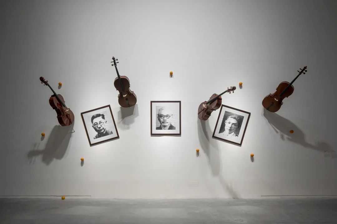 展覽現(xiàn)場,巴拉佐·迪米提杰維奇,《后歷史使者》,2006年,照片、提琴,尺寸可變。