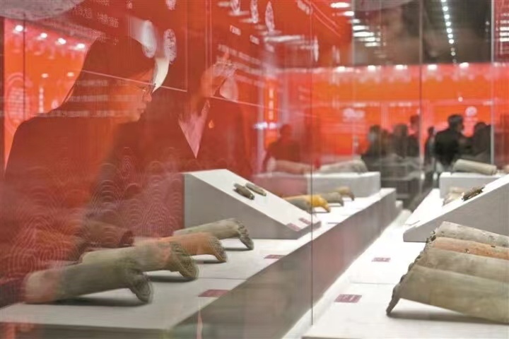 精美的瓦當(dāng)吸引游客駐足觀賞。 本報(bào)記者 冀古陶 攝