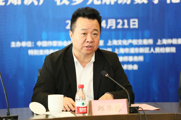 4月21日,中國(guó)作家協(xié)會(huì)權(quán)益保護(hù)辦公室在全國(guó)文學(xué)作品著作權(quán)保護(hù)與開發(fā)平臺(tái)正式啟動(dòng)之際,舉辦了以“新時(shí)代文學(xué)版權(quán)保護(hù)與開發(fā)”為主題的交流討論圓桌會(huì)。中國(guó)作協(xié)書記處書記邱華棟,上海文交所副總裁寧江生,上海仲裁委員會(huì)知識(shí)產(chǎn)權(quán)仲裁院秘書長(zhǎng)、上海版權(quán)協(xié)會(huì)副會(huì)長(zhǎng)王海娜,吉林省作家協(xié)會(huì)副主席王懷宇,作家、編劇楊樹,寧夏青年作家張少強(qiáng),上海文交所總裁助理、首席信息官張勝,上海文交所總裁助理黃濤,上海文交所副總監(jiān)、交易結(jié)算部總經(jīng)理艾菲菲,中視長(zhǎng)城總裁謝子猛,北京淘夢(mèng)副總裁劉廣杰,浙版數(shù)媒副總經(jīng)理英歡超,上海國(guó)際影視節(jié)中心市場(chǎng)部負(fù)責(zé)人陳潔,閱文集團(tuán)法務(wù)總監(jiān)唐豪臻,上海添橙總裁包振余,北京金誠(chéng)同達(dá)律師事務(wù)所高級(jí)合伙人沙海濤等參加座談。