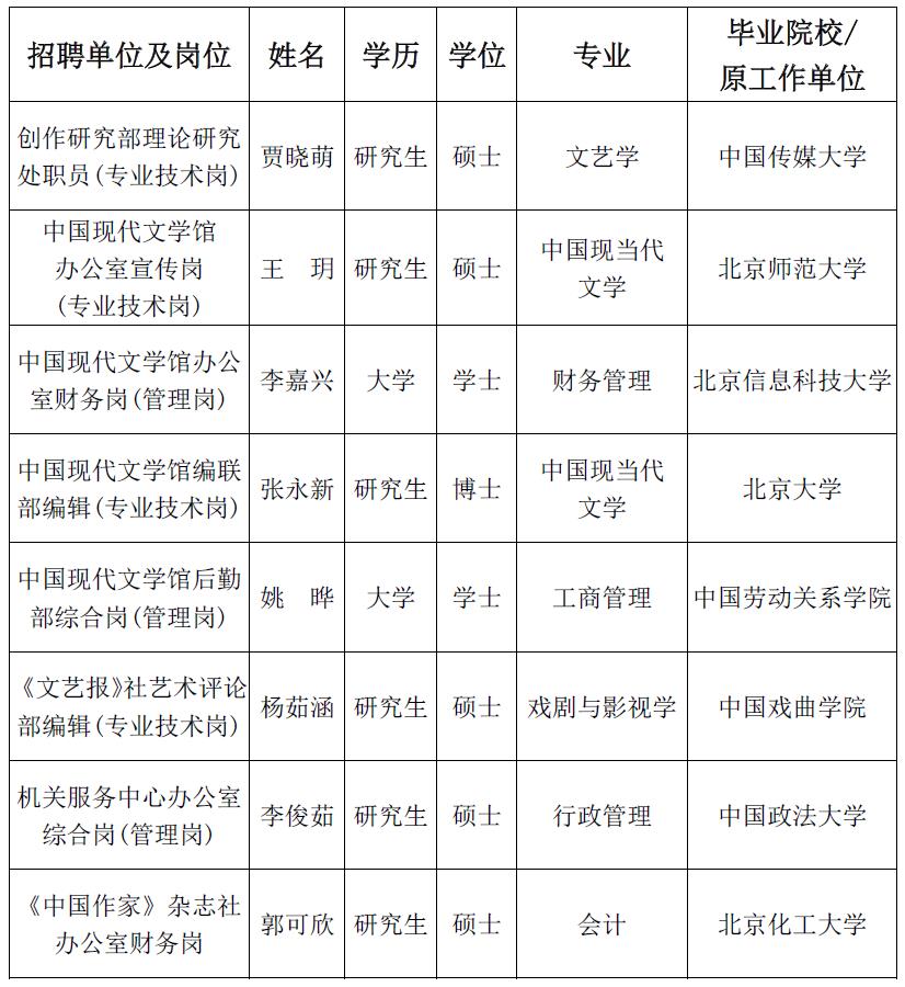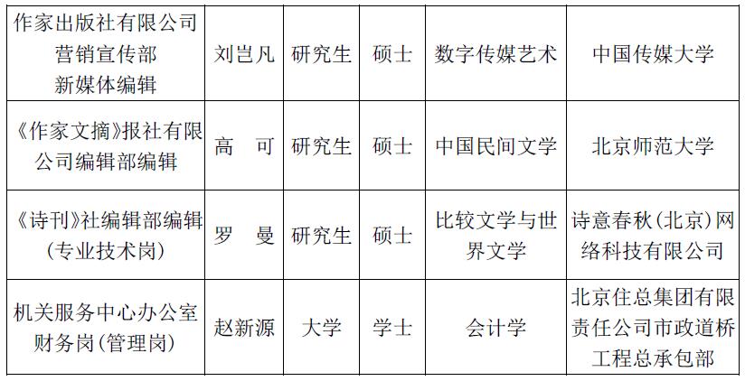 2023年度中國作協(xié)所屬單位擬聘人員公示