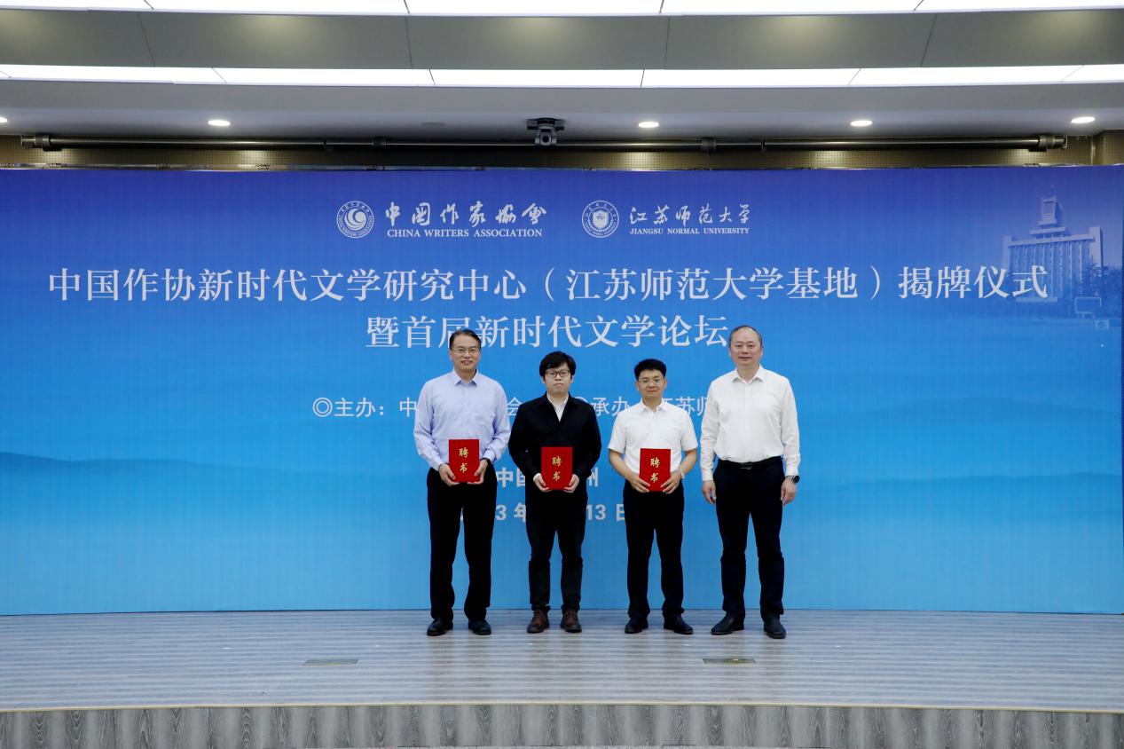 吳義勤、鄭焱、方忠共同為中國作協(xié)新時(shí)代文學(xué)研究中心(江蘇師范大學(xué)基地)揭牌