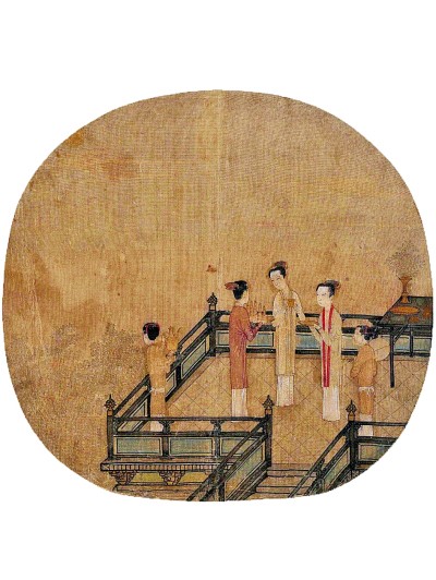 受程朱理學影響,宋代女性服色多崇淡青、墨綠、白等素雅色系,以粉紫、黑紫、蔥白、銀灰、沉香色等點綴為配色,自帶恬靜淡雅、自然端莊之美,與唐代服飾紅、紫、綠、青等艷麗之彩頗為不同。這些于宋代詞作和畫作之中均有據(jù)可查?!扒嗳怪耋雍嗡担鬻贌顭顮颗;ā薄鞍遵嗯畠合登嗳?,東家西家世通婚”,此為陸游詩詞,描寫村女日常穿著白色短衣,青色女裙,服色以淡青為基調,衣著以青白素色為常,服飾之美融入生活意境,多顯江南風土人情。秦少游于《南歌子·香墨彎彎畫》中寫道,“揉藍衫子杏黃裙”,揉藍為浸揉藍草而成湛藍色,杏黃指黃而微紅之色,女子服飾淡色清純,素色高雅。宋代經(jīng)典畫作亦少濃墨重彩,而多恬淡簡樸。朱淑真于《夏日游水閣》中寫道“淡紅衫子透肌膚”,寫出了衫色之淡、素、薄,體現(xiàn)宋人服飾用色儒雅之韻。