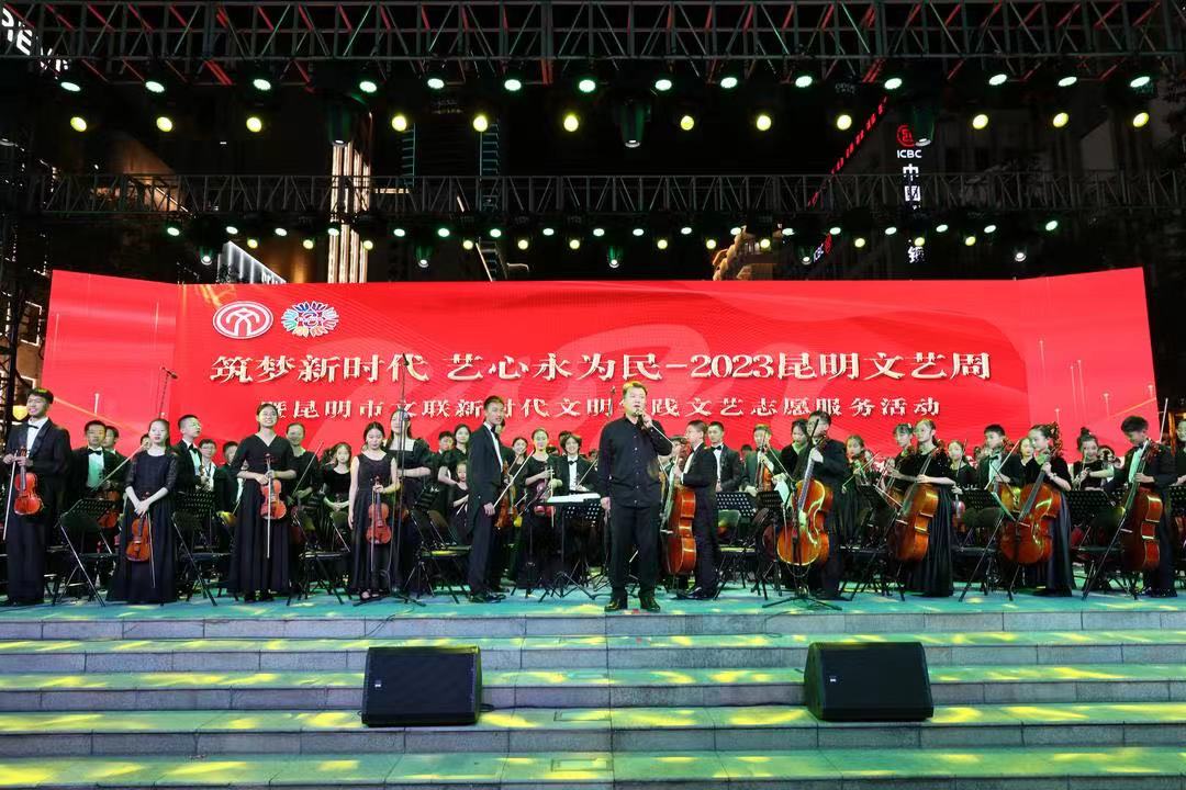 “筑夢(mèng)新時(shí)代 藝心永為民——2023昆明文藝周”暨昆明市文聯(lián)新時(shí)代文明實(shí)踐文藝志愿服務(wù)活動(dòng)由中共昆明市委宣傳部和市文聯(lián)共同主辦;中共五華區(qū)委宣傳部、五華區(qū)文學(xué)藝術(shù)界聯(lián)合會(huì)、《滇池》文學(xué)雜志編輯部、昆明文學(xué)藝術(shù)研究院、昆明作家協(xié)會(huì)、昆明兒童文學(xué)研究會(huì)、昆明攝影家協(xié)會(huì)、昆明美術(shù)家協(xié)會(huì)、昆明書(shū)法家協(xié)會(huì)、昆明舞蹈家協(xié)會(huì)、昆明戲劇家協(xié)會(huì)、昆明曲藝家協(xié)會(huì)、昆明民間文藝家協(xié)會(huì)、昆明電影電視藝術(shù)家協(xié)會(huì)、昆明文藝評(píng)論家協(xié)會(huì)、昆明模特藝術(shù)家協(xié)會(huì)、昆明網(wǎng)絡(luò)文學(xué)協(xié)會(huì)承辦;云南青少年交響樂(lè)團(tuán)、馬家大院、新華書(shū)店南屏街店、昆明信息港協(xié)辦;執(zhí)行單位為昆明市民族歌舞劇院。