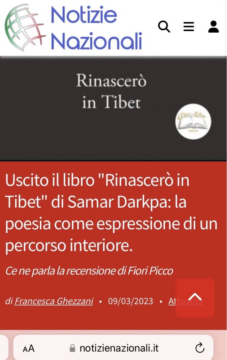 5月12日和18日,意大利 “中國(guó)文學(xué)讀者俱樂(lè)部” 舉辦第四期讀書活動(dòng),推介了詩(shī)人沙冒智化的意大利文版詩(shī)集《重生西藏》。該活動(dòng)分為線下、線上兩場(chǎng),由中國(guó)作家協(xié)會(huì)支持,意大利中國(guó)文學(xué)讀者俱樂(lè)部與意大利花達(dá)西亞出版社 (Fiori d’Asia Editrice) 、意大利布雷西亞基亞里市 “燈塔50.0文化協(xié)會(huì)“( Associazione Il Faro 50.0 di Chiari ) 和意大利著名文學(xué)沙龍 “吟游詩(shī)人之家” ( La Casa del Menestrello) 聯(lián)合舉辦。