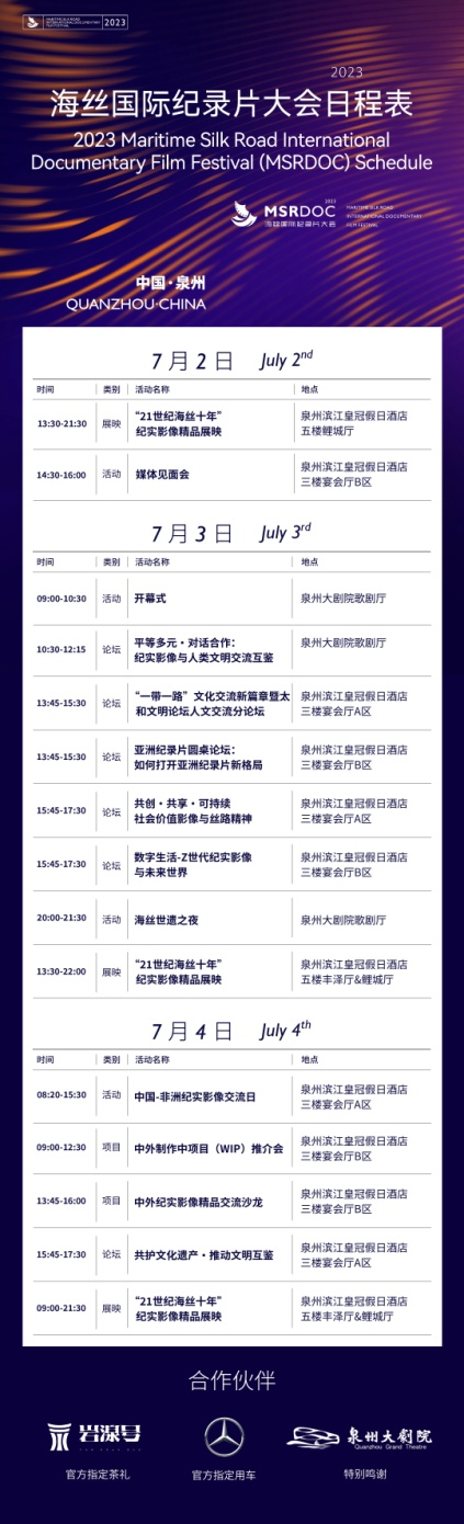 據(jù)悉,2023海絲國(guó)際紀(jì)錄片大會(huì)有兩大特點(diǎn):第一,國(guó)際合作。作為國(guó)內(nèi)聚焦國(guó)際交流合作、打造高質(zhì)量紀(jì)錄片推介的節(jié)展,大會(huì)作品集展映、項(xiàng)目推薦、主題研討、文化體驗(yàn)于一體,此次大會(huì)共邀請(qǐng)到7位國(guó)際A類紀(jì)錄片節(jié)展主席、12個(gè)國(guó)家電視臺(tái)制播機(jī)構(gòu)代表共同參與,開(kāi)展活動(dòng)7大類、15場(chǎng),其中包括5個(gè)國(guó)際合拍項(xiàng)目合作意向簽署儀式、11個(gè)中外制作中項(xiàng)目(WIP)提案,還有19部中外精品紀(jì)錄片展映。大會(huì)充分對(duì)接中外紀(jì)錄片制播節(jié)展資源,增進(jìn)中外創(chuàng)作者交流,促進(jìn)紀(jì)實(shí)影像的國(guó)際合作。第二,海絲特色。泉州作為聯(lián)合國(guó)教科文組織唯一承認(rèn)海上絲綢之路起點(diǎn)城市,大會(huì)落地泉州,充分融合了各種泉州要素,如以泉州為主題的紀(jì)錄片為案例探討文化遺產(chǎn)保護(hù)的論壇活動(dòng)、海絲世遺之夜、發(fā)現(xiàn)海絲人文之旅、國(guó)際傳媒人士調(diào)研、泉州非遺展示互動(dòng)區(qū)等,讓海內(nèi)外嘉賓沉浸體驗(yàn)宋元中國(guó)世界海洋貿(mào)易中心的魅力。
