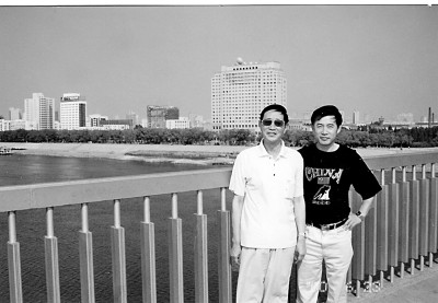 2000年,吳元邁(左)與劉文飛在黑龍江哈爾濱松花江合影