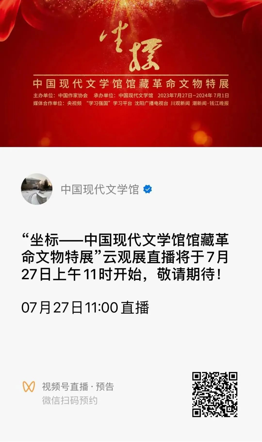 中國(guó)現(xiàn)代文學(xué)館與央視頻《品讀》聯(lián)合舉辦的探展直播將于7月27日上午11時(shí)正式開(kāi)始,歡迎您觀(guān)注中國(guó)現(xiàn)代文學(xué)館微信視頻號(hào)、官方抖音號(hào)、官方快手號(hào),收看直播。
