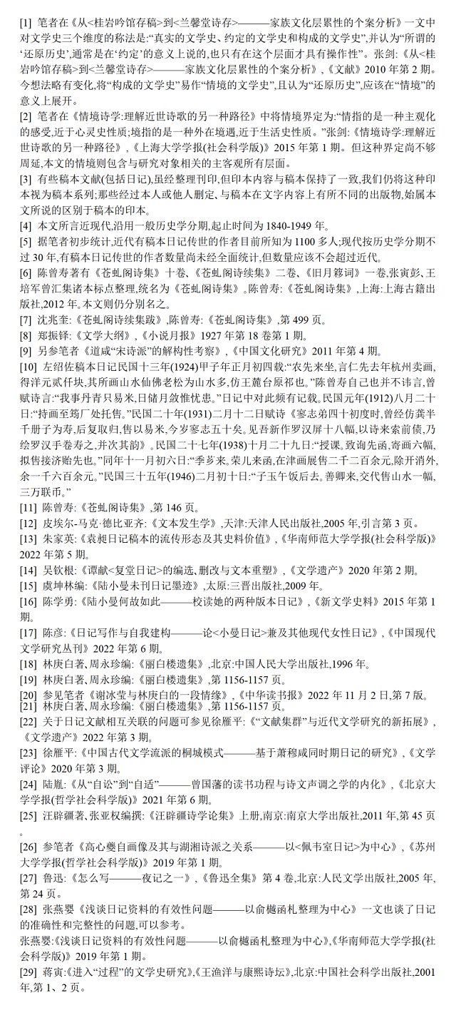 雖然近現(xiàn)代之前,由于史料遺存相對較少,稿本日記更難獲得,情境文學史的建構(gòu)會有諸多困難。即便如此,其研究亦可借助從近現(xiàn)代稿本日記中獲得的經(jīng)驗,反推或模擬自身的情境文學史,將文獻碎片努力拼合為歷史的整體圖景,這同樣是值得肯定和嘗試的一種學術路徑。