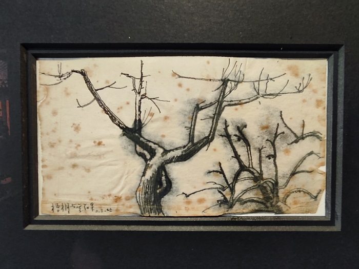 金宇澄的繪畫經(jīng)歷可以追溯到其青年時期在東北知青的日子,2011年以《繁花》插圖開始畫畫,本次展出的《梧桐與無花果》作于1976年,是他那個時期保留下來的唯一一件手稿。在梧桐與無花果旁邊的作品是一張藝術(shù)家自畫像。