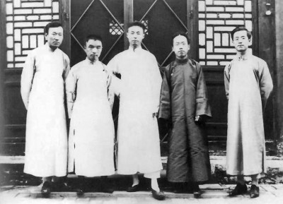 1925年,朱自清與友人在清華園留影,左二為朱自清,左四為俞平伯。初到清華大學三年,朱自清主要講授“國文”“古今文選”等課程。資料圖片