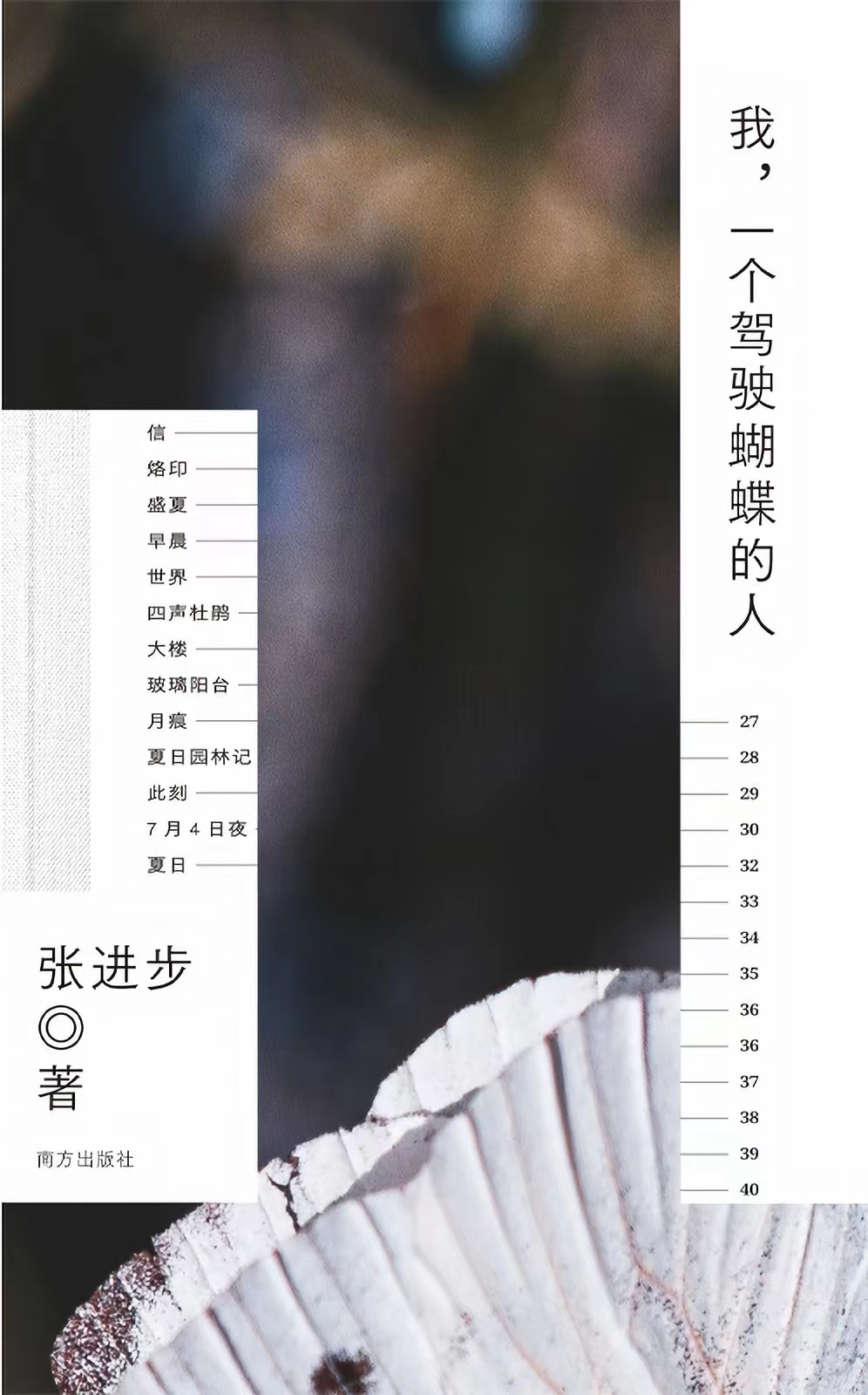 《我,一個駕駛蝴蝶的人》是詩人張進步的詩集,收錄了詩人創(chuàng)作的127首短詩、1篇詩學隨筆、1篇詩人專訪。內(nèi)容分為“菩薩是一陣細雨”“意象戲劇”“世界和它閃光的部分”“秋夜七弦”四輯。在這本詩集中,作者打破規(guī)則的藩籬,讓萬物紛紛涌入筆下,詩歌的內(nèi)容更加豐富,詩歌的形式也更加自由。其中“秋夜七弦”是一部組詩,每首詩七行,每行都是長句,共20首,每首詩圍繞一兩個核心意象展開,符合詩人對“意象戲劇”的追求。