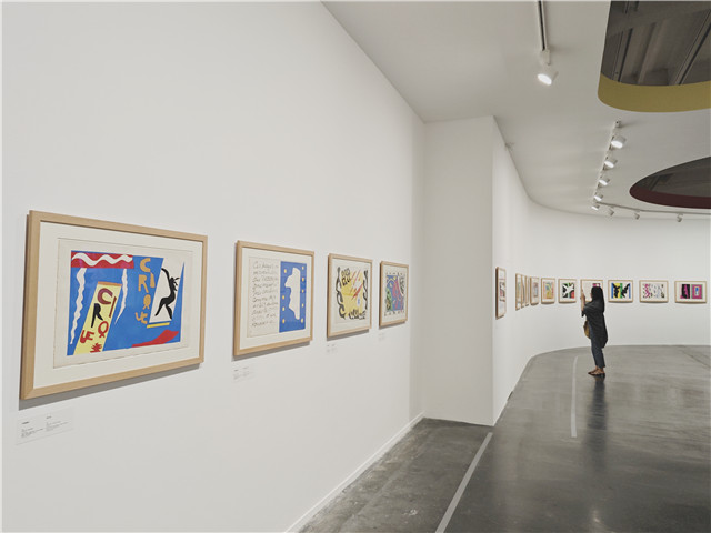 經(jīng)常有人將剪紙誤讀為 72歲的馬蒂斯因疾病纏身、無(wú)法再提筆繪畫(huà)的權(quán)宜之計(jì)。事實(shí)上,藝術(shù)家在裁剪造型、構(gòu)圖與定稿過(guò)程中體現(xiàn)了對(duì)自我和作品近乎嚴(yán)苛的要求。展陳中可見(jiàn)大量的剪紙作品及運(yùn)用此方法創(chuàng)作的藝術(shù)書(shū)(其中最著名的是于1947年9月出版的《爵士》)、戲劇舞臺(tái)設(shè)計(jì)、壁畫(huà)、紡織物、彩色玻璃花窗等衍生作品,通過(guò)事實(shí)糾正了可能發(fā)生的誤讀。