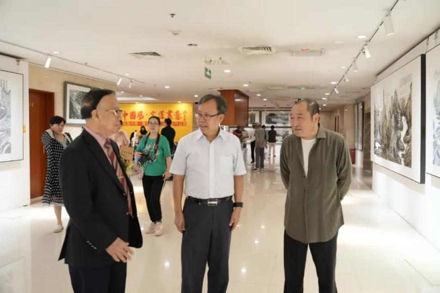 中宣部原副部長(zhǎng)兼中央文明辦原主任、中國(guó)文聯(lián)原黨組書記胡振民,中國(guó)國(guó)家畫院原院長(zhǎng)盧禹舜,中國(guó)美術(shù)家協(xié)會(huì)藝術(shù)理論委員會(huì)主任尚輝,中國(guó)國(guó)際文化交流中心副秘書長(zhǎng)梁宇,中國(guó)人民大學(xué)教授陳傳席,中央美術(shù)學(xué)院科研處處長(zhǎng)于洋,中央電視臺(tái)書畫頻道董事局主席王平,中央文史研究館書畫院研究員、北京市文史研究館館員張廣志,中國(guó)國(guó)際文化交流中心藝術(shù)館藝術(shù)總監(jiān)常輝,民盟中央美術(shù)院副院長(zhǎng)何軍委,中央電視臺(tái)節(jié)目主持人董浩,《藝術(shù)市場(chǎng)》雜志社總編輯續(xù)鴻明,中央美術(shù)學(xué)院人文學(xué)院副院長(zhǎng)黃小峰,首都師范大學(xué)副教授任軍偉,中國(guó)國(guó)際文化交流中心藝術(shù)館館長(zhǎng)洪和文,作家張瑞田,藝術(shù)家蔡豪杰等出席開(kāi)幕式。開(kāi)幕式上,梁宇、陳傳席、張廣志、董永智分別致辭。