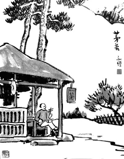 豐子愷有不少散文猶如抒情畫?!渡街斜苡辍穼懙脴O有詩(shī)趣,一如他的抒情漫畫,初讀十分清淺,像清茶,然細(xì)細(xì)玩味,竟余味無(wú)窮,如米酒。作品開(kāi)頭就描繪了一幅煙雨朦朧的山村小景。為了避雨解悶,作者向茶博士借了一把胡琴,拉奏了各種西洋小曲。至此,苦雨荒山開(kāi)始活躍起來(lái),散文的意境也從古山水畫般的氛圍進(jìn)入現(xiàn)實(shí)民間的世俗人情。作者寫到兩女孩和著西洋小曲歌唱時(shí),作品的調(diào)子開(kāi)始溫暖起來(lái),仿佛把游山遇雨的寂寥心情遠(yuǎn)遠(yuǎn)地拋到腦后。而當(dāng)寫到一個(gè)女孩唱著《漁光曲》,并引得三家村里的青年們一起合唱時(shí),作品進(jìn)入高潮,作者本人也情不自禁大動(dòng)感興,體會(huì)到了音樂(lè)的親和力,更重要的是體會(huì)到民族音樂(lè)對(duì)中國(guó)普通百姓的陶冶效果。