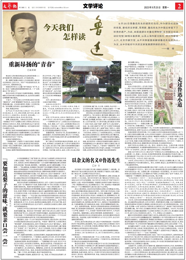 9月25日是魯迅先生的誕辰紀(jì)念日。作為新文化運(yùn)動(dòng)的先驅(qū),著名的文學(xué)家、思想家,魯迅先生為中國(guó)文學(xué)留下了珍貴的遺產(chǎn)。為此,本報(bào)邀請(qǐng)北京魯迅博物館(北京新文化運(yùn)動(dòng)紀(jì)念館)副館長(zhǎng)姜異新,以及上海作家沈軼倫、四川作家羌人六、北京作家方言,從不同側(cè)面重新解讀魯迅先生的為人為文,從中亦能對(duì)今天的文學(xué)發(fā)展提供新的啟示。