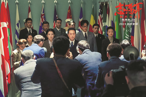 全片的新意還體現(xiàn)在著力設(shè)置一系列細節(jié),在場景和人物性格的深描上取得實效。深描,意味著不是浮光掠影式的淺層描寫,而是深刻的、富于穿透力的深度意義構(gòu)建。下面這些細節(jié)確實具有深描的力量:從麥克阿瑟在戰(zhàn)場上用白手巾擦皮鞋的細節(jié),可見出其狂妄和剛愎自用的性格;透過毛澤東與林巧稚在天安門城樓有關(guān)生命的對話,可知領(lǐng)袖的戰(zhàn)略決策有著深厚的民間輿論支撐;毛岸英臨行前同繁忙父親的隔窗遠望式道別鏡頭,傳達出領(lǐng)袖之子與民同甘共苦的意涵;由毛岸英細心開導小楊到后者主動為前者修鞋,強化上述同甘共苦意涵;彭德懷的孤軍勇闖敵軍封鎖線、怒斥梁興初貽誤戰(zhàn)機、發(fā)出“38軍萬歲”的心聲等細節(jié),刻畫出“彭大將軍”的威風;松骨峰“鐵三角”戴如義、楊少成、孫醒之間有關(guān)誰活著就把連隊帶回的商議鏡頭,凸顯我軍團結(jié)奮戰(zhàn)和前仆后繼的光榮傳統(tǒng);伍修權(quán)在首次出席聯(lián)合國大會前夕讓譯員唐笙仔細核對國家名牌的英文翻譯,透露出新中國初登世界舞臺的莊重和嚴謹;他繼而在演講中揮拳拍桌子,表現(xiàn)了我方的自信和自強;松骨峰上虛擬出的一棵松造型,可以有效地滿足觀眾看到此景時油然而生的敬仰英雄之情懷。透過這些細節(jié),毛澤東的雄才大略、毛岸英的純真善良和平易近人、彭德懷的英勇無畏和粗中有細、梁興初的知恥后勇、松骨峰“鐵三角”的鐵膽忠魂、伍修權(quán)的正義凜然和細心謹慎等獨特性格特征,宛如浮雕般凸顯出陽剛而壯麗的風采。