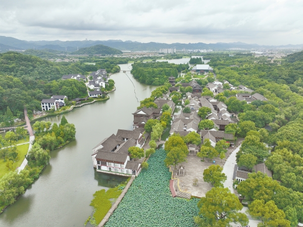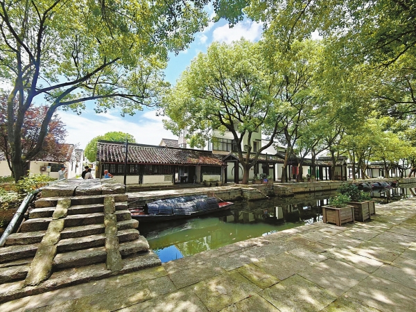寬闊平整的街道和水光瀲滟的河道,串聯(lián)起471幢粉墻黛瓦的江南民居,幾步一景,如同江南園林。