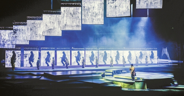 結尾處尤為動人心魄。深情的音樂中,目光深邃的魯迅先生不同時期的頭像,那些寄慨深沉的文字片段,不斷從暗處劈空而下,撞擊你的眼簾。末了,一束光亮穿透舞臺中央,仿佛人生希望的出口。一個洪亮的聲音響起:“觀眾朋友們,讓我們一起穿越舞臺,出路就在前方!”順著光亮,穿過舞臺,你不免會眼含熱淚地想起一段話:“我想:希望是本無所謂有,無所謂無的。這正如地上的路;其實地上本沒有路,走的人多了,也便成了路。”