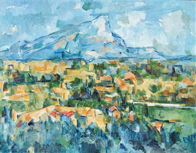 由此,塞尚、梵高、高更等藝術(shù)家的繪畫語(yǔ)言逐漸展現(xiàn)出不同于印象派的風(fēng)格。塞尚在繪畫中拋棄了明暗和透視,尋求色彩與形狀的互相牽制,使畫面結(jié)構(gòu)更加穩(wěn)定嚴(yán)謹(jǐn),制造出物與物之間的空間張力。他的油畫作品《圣維克多山》(見(jiàn)圖,曲音供圖)用冷暖色搭配勾勒出許多幾何形狀的色塊,形如房屋、狀似樹(shù)木,以相互交疊的視覺(jué)呈現(xiàn)替代了透視效果,暗示出遠(yuǎn)近和前后關(guān)系,令畫面中的山峰無(wú)論從哪個(gè)角度觀看都顯得雄偉壯麗。