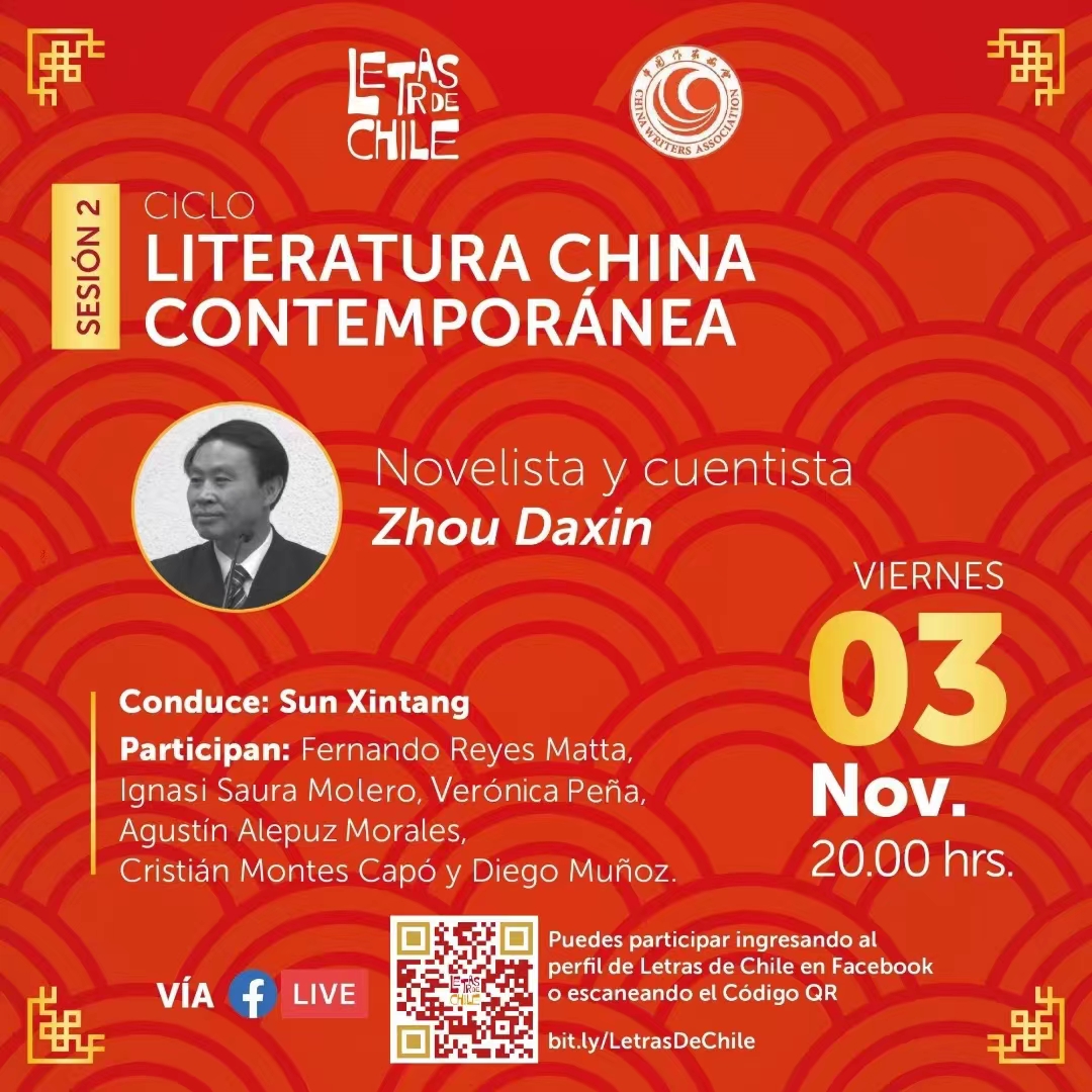 11月3日,由中國(guó)作協(xié)外聯(lián)部指導(dǎo),智利“中國(guó)文學(xué)讀者俱樂(lè)部”及智利文學(xué)網(wǎng)聯(lián)合舉辦的周大新作品《首次喚醒》西班牙文版分享會(huì)在線上舉行。作家周大新,智利前駐華大使、智利“中國(guó)文學(xué)讀者俱樂(lè)部”負(fù)責(zé)人、安德烈斯貝略大學(xué)中國(guó)研究中心主任費(fèi)爾南多·雷耶斯·馬塔,智利文學(xué)協(xié)會(huì)主席、著名作家迭戈·穆尼奧斯·瓦倫蘇埃拉,西班牙漢學(xué)家夏海明,智利大學(xué)文學(xué)系教授、評(píng)論家克里斯蒂安·蒙特斯參與討論,北京語(yǔ)言大學(xué)拉丁美洲研究中心主任孫新堂主持,300多位智利讀者通過(guò)臉書(shū)、優(yōu)兔等平臺(tái)在線參加。