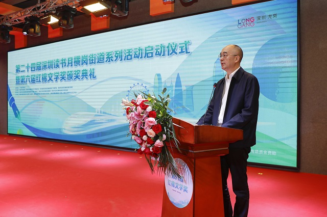 11 月 12 日上午,第六屆紅棉文學(xué)獎頒獎典禮暨第二十四屆深圳讀書月橫崗街道系列活動啟動儀式正式啟幕。文學(xué)大咖齊聚橫崗,與市民共赴一場文化盛宴,同時通過“深讀城市”論壇、經(jīng)典詩文誦讀、“橫崗好人”頒獎等系列特色活動,帶領(lǐng)觀眾感受經(jīng)典魅力和文學(xué)之美。中國作協(xié)黨組成員、副主席吳義勤,廣東省作協(xié)創(chuàng)研部主任周西籬,深圳市文聯(lián)黨組成員、專職副主席王國猛,龍崗區(qū)政協(xié)黨組副書記、副主席劉峰,區(qū)文聯(lián)主席林楠,橫崗街道黨工委書記劉慶以及省作協(xié)、市文藝創(chuàng)作中心、市作協(xié)、市評論家協(xié)會、龍崗區(qū)委政法委、區(qū)文聯(lián)以及橫崗街道等相關(guān)單位負責(zé)人出席活動。