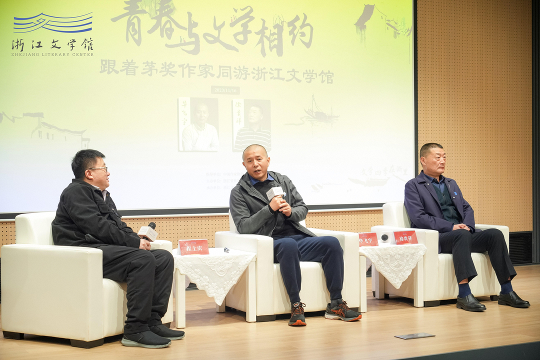 “青春與文學(xué)相約——跟著茅獎(jiǎng)作家同游浙江文學(xué)館”是本屆茅盾文學(xué)周的首發(fā)活動(dòng),著名作家畢飛宇、徐貴祥來到浙江文學(xué)館,和學(xué)生們一起分享有關(guān)文學(xué)的故事、交流有關(guān)文學(xué)的看法。