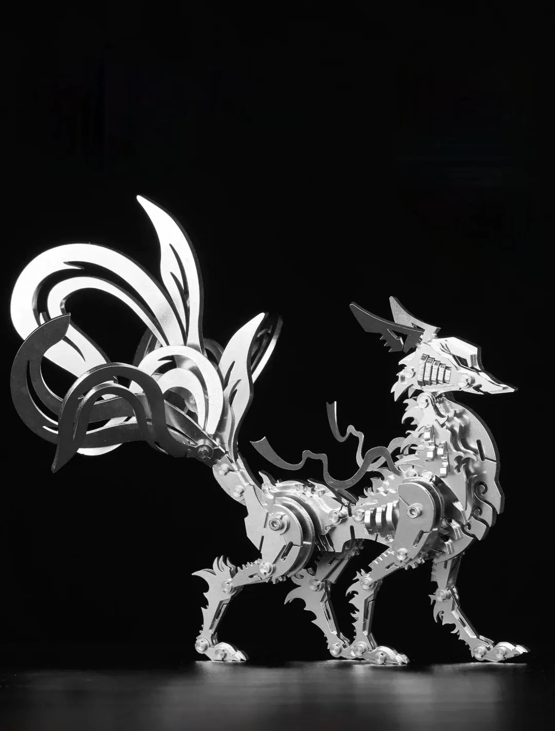 寫作過程中,為了模擬出“械人”和“獸”的造型,我找了許多酷拼素材和金屬積木。比如小說里有一個“九尾”形象,在志怪小說里,九尾狐耳熟能詳,有妖精和魅惑的特點,有人的造型,也有動物的造型。而在酷拼作品當中,我也能用金屬積木、螺絲等零件拼出“九尾狐”的造型來(包括其他造型也有)……當我看到成品擺在眼前的時候,我真的覺得機械活了,古風皮下的金屬脈絡(luò)也活了,這個故事也是活的。