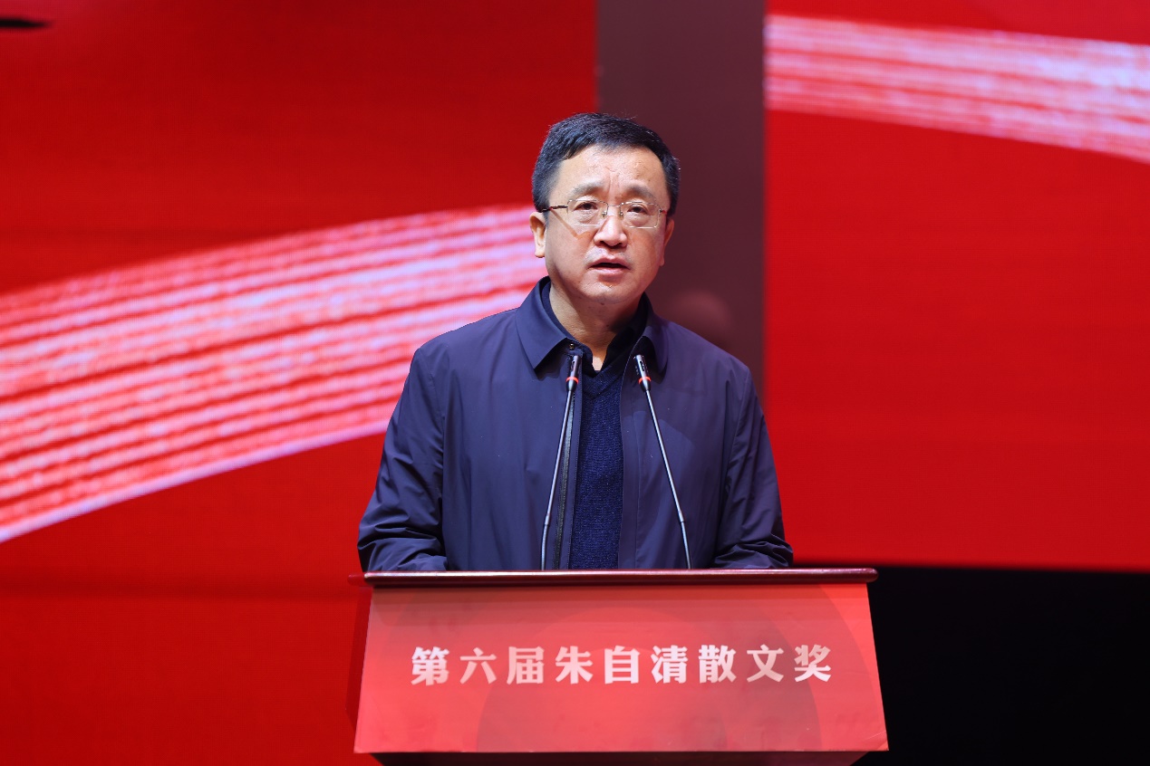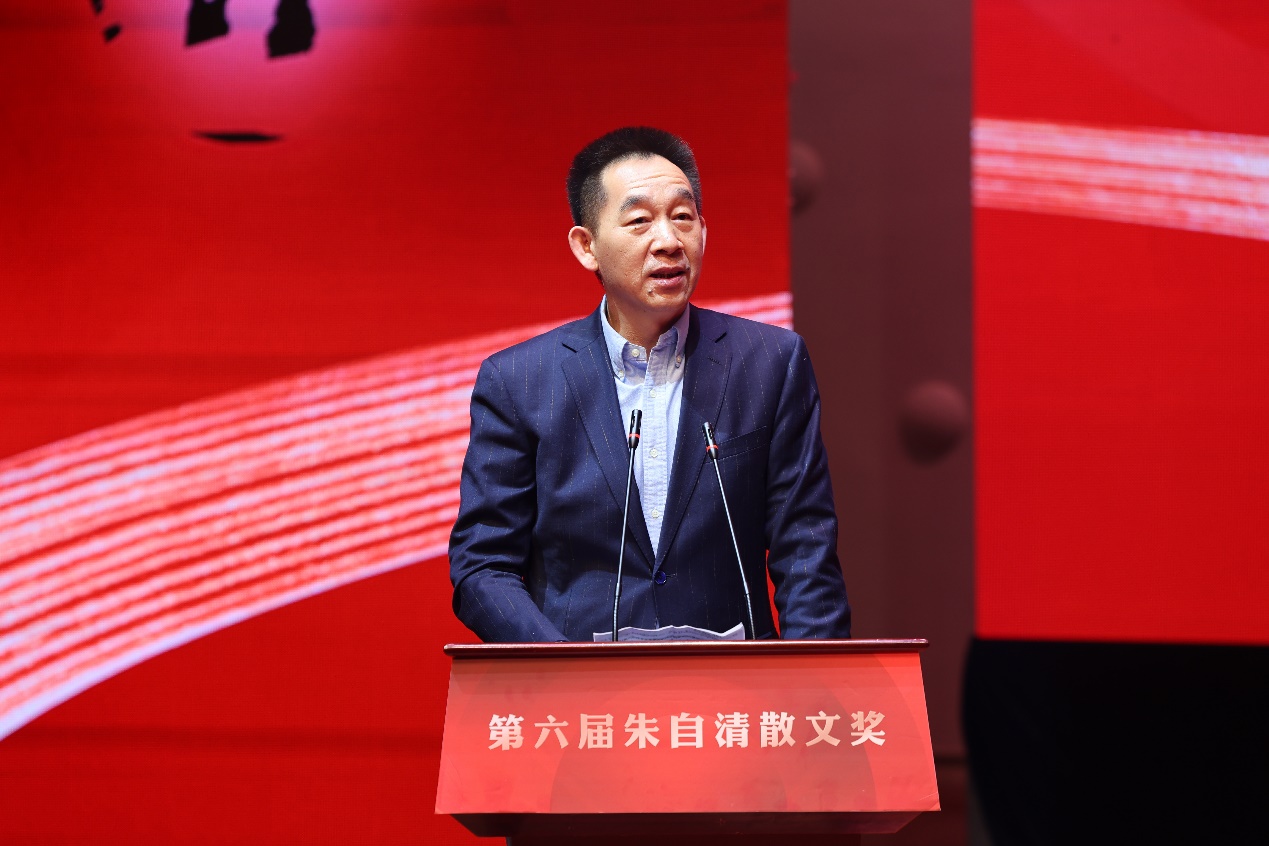 王進(jìn)健致歡迎辭并特別談到,朱自清先生是文學(xué)巨匠、文化先驅(qū)、民族脊梁,他生長于揚(yáng)州、求學(xué)于揚(yáng)州、任教于揚(yáng)州。在朱自清先生的家鄉(xiāng)舉辦“朱自清散文獎(jiǎng)”頒獎(jiǎng)儀式,既是緬懷朱自清先生,也是傳承、弘揚(yáng)先生的文學(xué)精神,推動(dòng)更多優(yōu)秀文學(xué)精品不斷涌現(xiàn)。