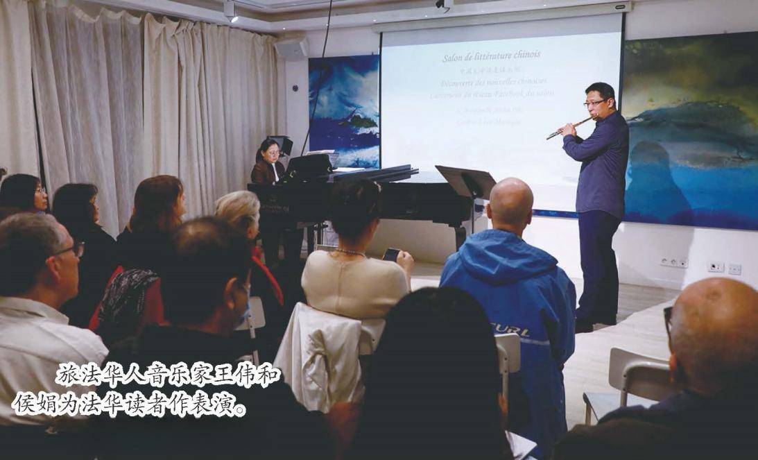 在活動(dòng)現(xiàn)場(chǎng),張若軍、埃勒維茲·列斐伏爾分別用中文和法語朗讀了唐代詩人白居易的《賦得古原草送別》,把法國讀者帶入經(jīng)典詩句“野火燒不盡,春風(fēng)吹又生”的意境。旅法華人音樂家王偉在鋼琴家侯娟伴奏下,吹奏了一曲長笛經(jīng)典作品《威尼斯狂歡節(jié)》,并用古老的中國樂器“塤”吹奏了一曲自己創(chuàng)作的《時(shí)間之路》,受到熱烈歡迎。
