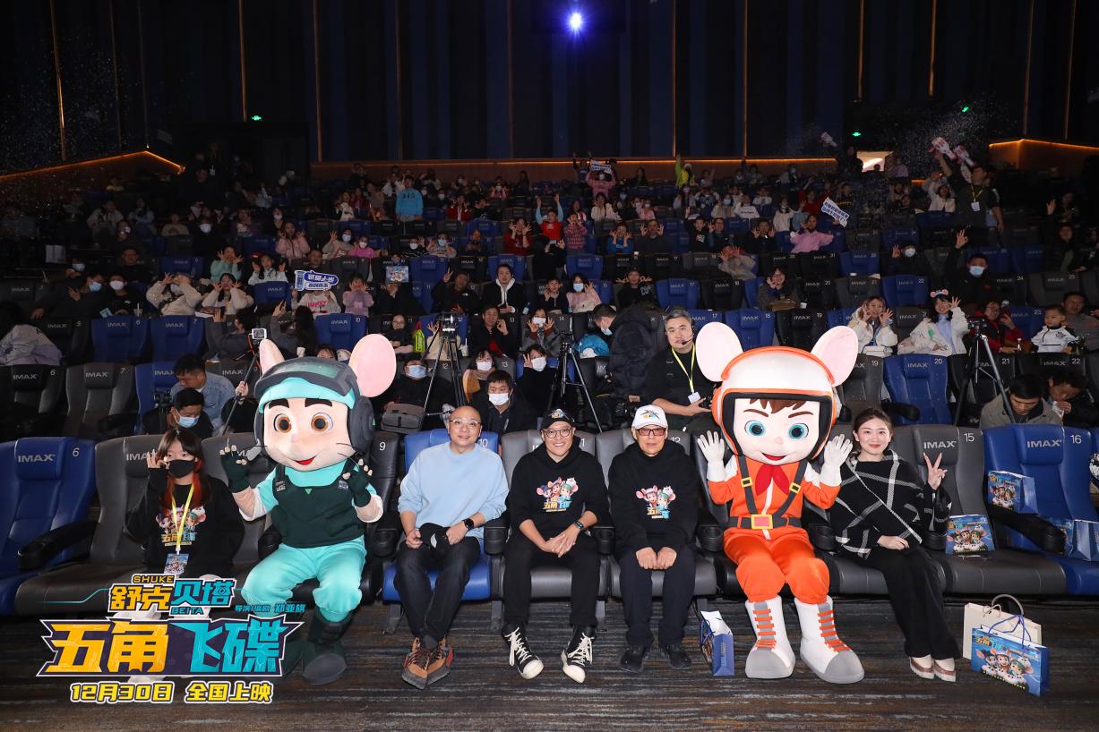 在12月23日舉行的該片首映禮現(xiàn)場,鄭淵潔為觀眾分享了自己人生致勝的法寶,那便是優(yōu)良的道德品質(zhì)。他還談到,在1983年12月30日,舒克與貝塔于《舒克和貝塔歷險(xiǎn)記》中相逢,2023年12月30日是舒克貝塔組合誕生40周年。所以選擇在這天,讓舒克貝塔組合首次在電影院和讀者一起跨年。首映禮現(xiàn)場,鄭亞旗導(dǎo)演表示第一次聽父親夸自己,并且終于圓了在影院看見父親作品的心愿。此外,鄭淵潔的孫女、鄭亞旗的女兒鄭在也來到現(xiàn)場,她還參與了影片配音。祖孫三人同臺(tái)驚喜分享溫暖了北京的冬夜。凱叔講故事App創(chuàng)始人凱叔也現(xiàn)場分享了其幕后配音的諸多樂趣,他談到給五角飛碟配音是因?yàn)樽约汉⑼瘯r(shí)期就對(duì)五角飛碟記憶深刻。