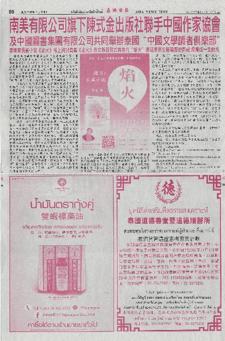 泰國“中國文學(xué)讀者俱樂部”舉辦李東華作品《焰火》泰文版首發(fā)式暨閱讀分享會(huì)