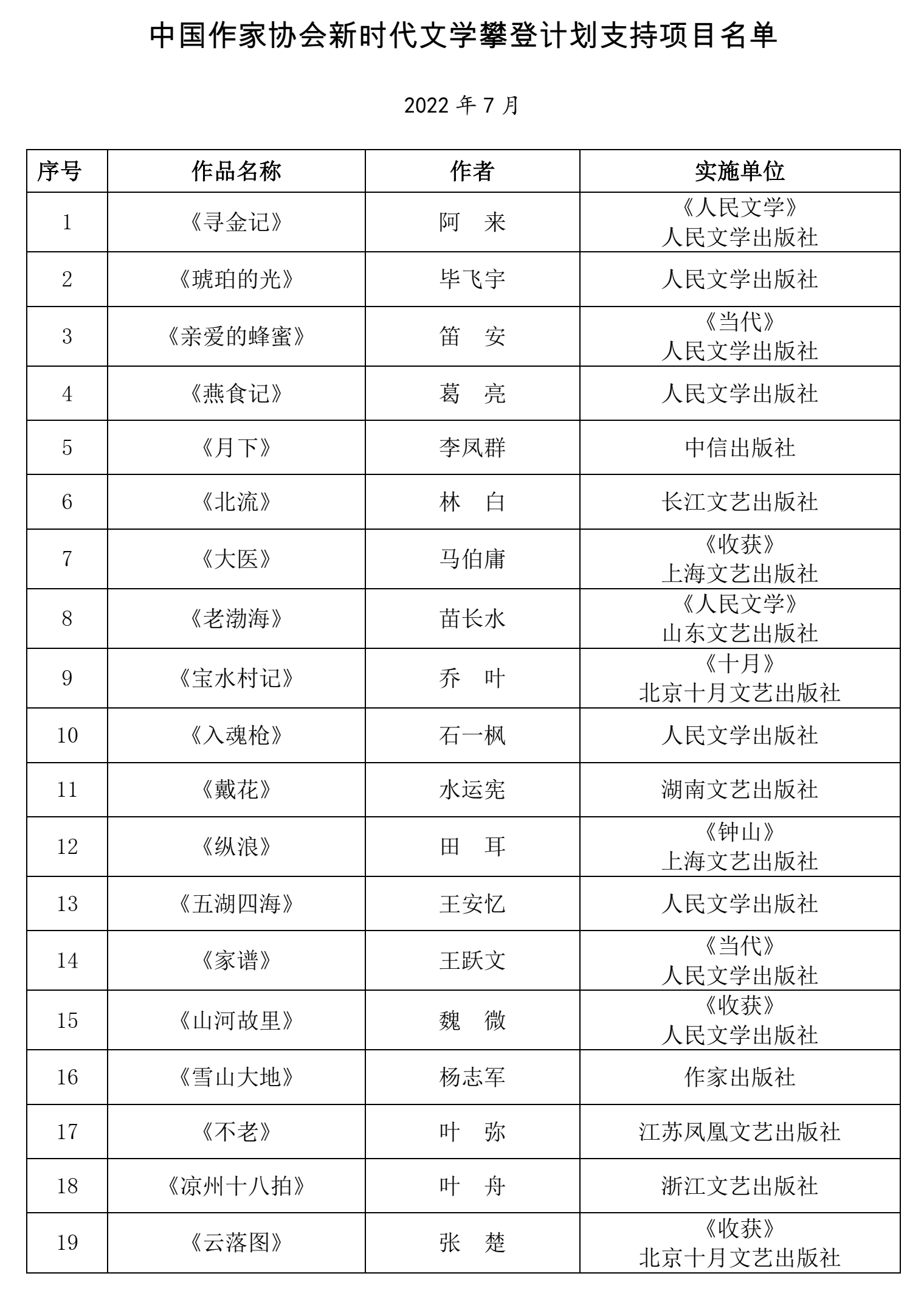中國作家協(xié)會新時代文學(xué)攀登計劃首批支持項目名單