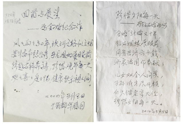 父親題作的《回首與展望——為金婚紀(jì)念作》和《珍惜夕陽每一天——為“鉆石婚”而寫》