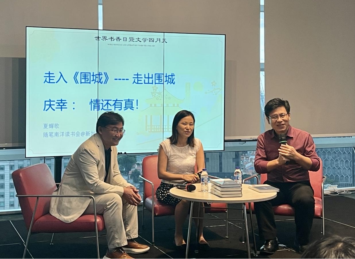 4月下旬,作為新加坡“世界書香日”系列讀書活動(dòng)之一,新加坡讀者俱樂部特意將錢鐘書先生的經(jīng)典長篇小說《圍城》與徐坤的《神圣婚姻》做了聯(lián)合導(dǎo)讀,引發(fā)了讀者的熱烈討論。導(dǎo)讀活動(dòng)由夏蟬歌、方虹主持,對(duì)這兩部作品進(jìn)行了有趣的對(duì)比:兩部作品源自不同時(shí)代,其中《圍城》的故事起始于上海,主人公后到內(nèi)地大學(xué)執(zhí)教;《神圣婚姻》的故事則發(fā)生在北京,以鄉(xiāng)村支教的選擇作為收尾。兩部小說都有“海歸”知識(shí)分子的形象,都寫出了年輕人的痛苦和迷茫,掙扎和選擇。但方鴻漸發(fā)現(xiàn)婚姻就像《圍城》,人生也是。而徐坤筆下的主人公卻選擇相信婚姻,繼續(xù)找尋愛情與婚姻的新可能。