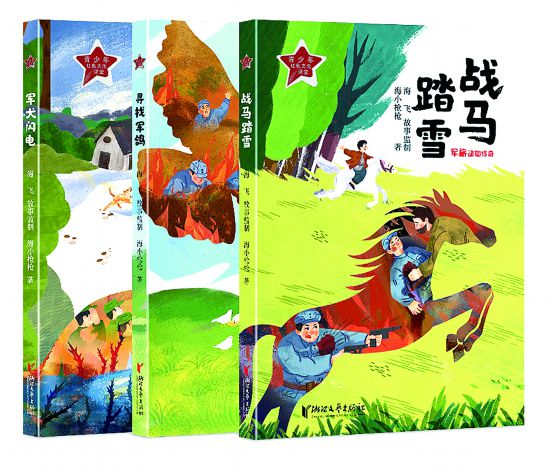 在海小槍槍“軍旅動物傳奇”系列兒童小說作品中,作者著眼于孩子與動物之間的深厚情誼,以抗戰(zhàn)作為背景,創(chuàng)作了《戰(zhàn)馬踏雪》《尋找軍鴿》《軍犬閃電》等幾部兒童文學(xué)作品。
