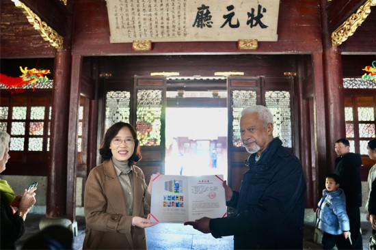 3月9日,諾貝爾文學(xué)獎(jiǎng)得主古爾納攜夫人來(lái)到了寧波天一閣。從范欽銅像到東明草堂,從天一閣藏書(shū)樓到秦氏支祠戲臺(tái),古爾納夫婦感受了寧波獨(dú)有的“書(shū)藏古今”。聽(tīng)聞自己是參觀天一閣的第一位諾獎(jiǎng)得主,古爾納表示高興,還說(shuō):“Many thanks for a wonderful visit(非常感謝這一段美好的旅程)?!?/p>