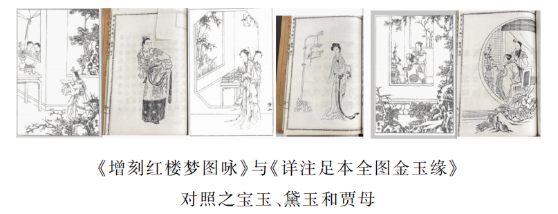 《詳注足本全圖金玉緣》的人物繡像仿自王墀《增刻紅樓夢圖詠》,尤其是人物選擇、順序和構圖設計都極為相似,但在某些人物的姿勢、取景等構圖設計上卻又大為不同。如寶玉、黨玉和賈母,在場景和人物的總體設置上,以及構圖的細節(jié)處都是相異大于相似。王墀《增刻紅樓夢圖詠》出版于1882年,當時申報館因改琦的《紅樓夢圖詠》在戰(zhàn)亂之后“傳本絕少”?,而由淮浦居士重刻的版本銷路很好,于是推出了王墀的《增刻紅樓夢圖詠》石印本,以照相石印法將畫作縮印成書,訂成兩本銷售。