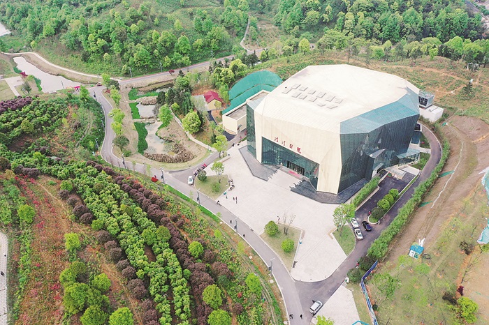 初入清溪村村口,途經(jīng)水榭舞臺、方言廣場,一幢外立面呈淡褐色、由淡藍(lán)色鋼化玻璃組建而成的劇院映入眼簾。于2019年建成、2020年10月正式投入運(yùn)營的清溪?jiǎng)≡海偨ㄖ娣e7161.62平方米,占地面積3000平方米。遠(yuǎn)遠(yuǎn)望去,以石頭為原型的劇院建筑單體,堅(jiān)定、穩(wěn)固、頑強(qiáng)地占據(jù)清溪景區(qū)一角,給人以“奇特返于平常,至味歸于淡泊”之感。