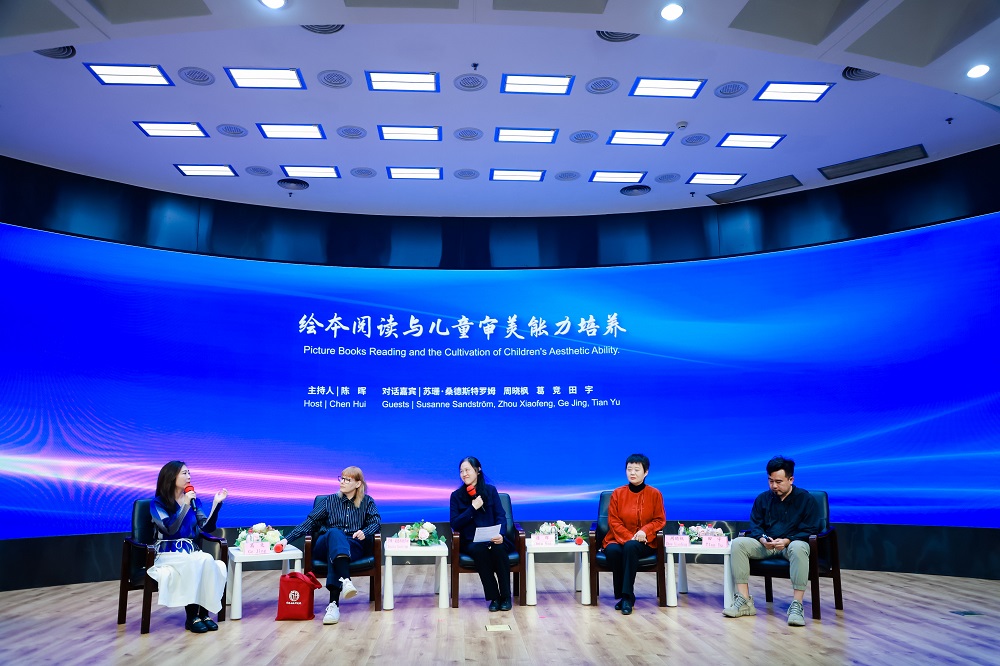 第二場對話圍繞“繪本閱讀與兒童審美能力培養(yǎng)”展開。主持人陳暉表示,童書體現(xiàn)的不僅是文字的美,更是思想的美和對世界的期待,“美是陪伴人一生的,重要的是讓孩子學(xué)會感受美、發(fā)現(xiàn)美”。田宇分析了文字在繪本創(chuàng)作中的重要作用。他認(rèn)為,文與圖的巧妙配合是成就一部優(yōu)秀繪本的關(guān)鍵。蘇珊分享了瑞典繪本針對不同年齡段兒童采取不同風(fēng)格的經(jīng)驗(yàn),表示繪本和文字書各有所長,要相信兒童自身,不同年齡段的兒童會有不同的閱讀體驗(yàn)。周曉楓分享了兒童文學(xué)和繪本跨界創(chuàng)作的經(jīng)驗(yàn),她表示,繪本不是簡化的文學(xué),凡是能提高孩子對世界的感知、發(fā)現(xiàn)自身不足、勇敢面對困難的能力的書都有價值,不存在高下之分,并且很多少兒繪本對成年人同樣具備感染力。葛競談到,孩子閱讀繪本過程中會表現(xiàn)出種種反應(yīng),需要被肯定、被贊美,從而激發(fā)其探索事物內(nèi)在關(guān)聯(lián)的能力,獲得審美的經(jīng)驗(yàn),這是繪本能夠帶給孩子審美體驗(yàn)的重要動因。