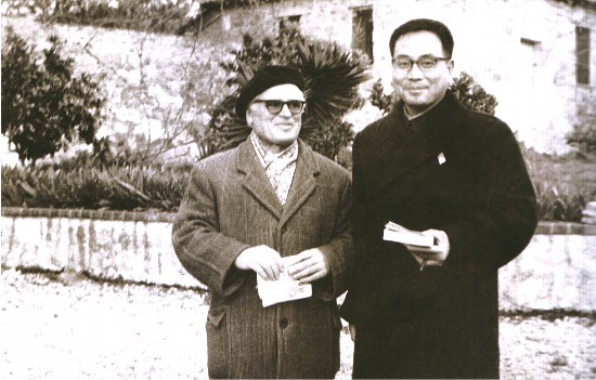 鄭恩波作為《人民日報》記者代表團(tuán)團(tuán)員兼翻譯訪問阿爾巴尼亞費(fèi)里區(qū),與雅科夫·佐澤(左)合影留念 1974年12月3日攝