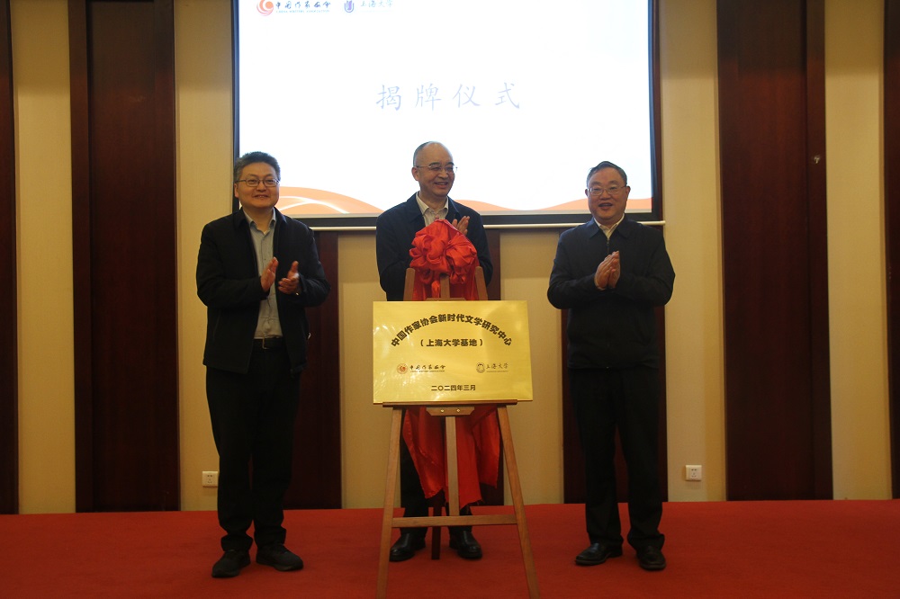 吳義勤、馬文運、成旦紅為中國作協(xié)新時代文學研究中心(上海大學基地)揭牌