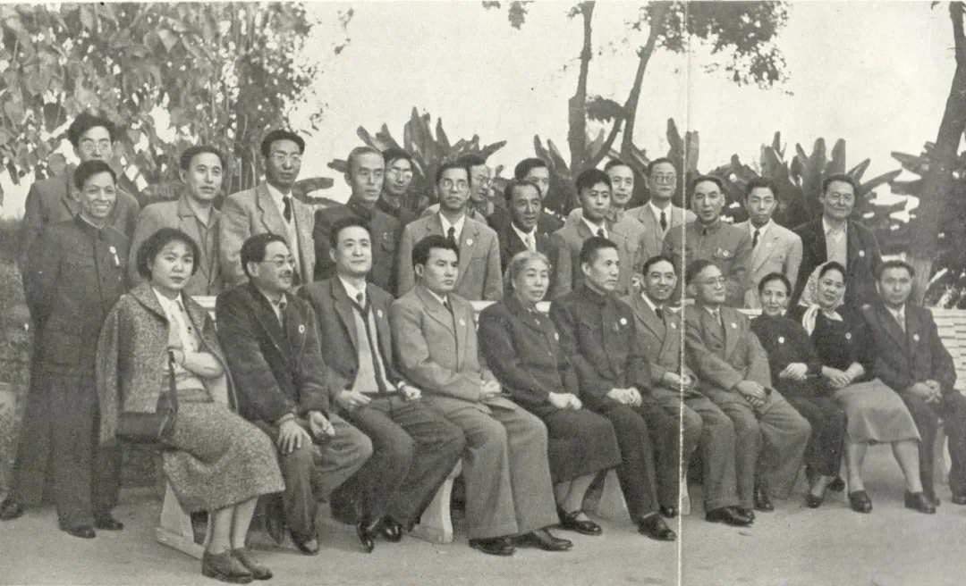 圖1 1958年10月,出席亞非作家會(huì)議中國(guó)代表團(tuán)合影。團(tuán)長(zhǎng)茅盾(右五),副團(tuán)長(zhǎng)周揚(yáng)(右六)、巴金(右四)。團(tuán)員有戈寶權(quán)、葉君健、劉白羽、曲波、祖農(nóng)·哈迪達(dá)爾、季羨林、趙樹(shù)理、袁水拍、郭小川、納·賽音朝克圖、庫(kù)爾班·阿里、許廣平、張庚、楊朔、楊沫、瑪拉沁夫、謝冰心、蕭三。