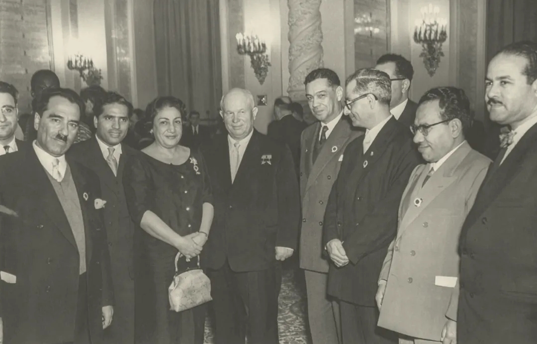 圖5 赫魯曉夫在克林姆林宮接見(jiàn)參加首屆亞非作家會(huì)議的埃及與敘利亞作家,來(lái)源:Rossen Djagalov, From Internationalism to Postcolonialism: Literature and Cinema between the Second and the Third Worlds, p.66.