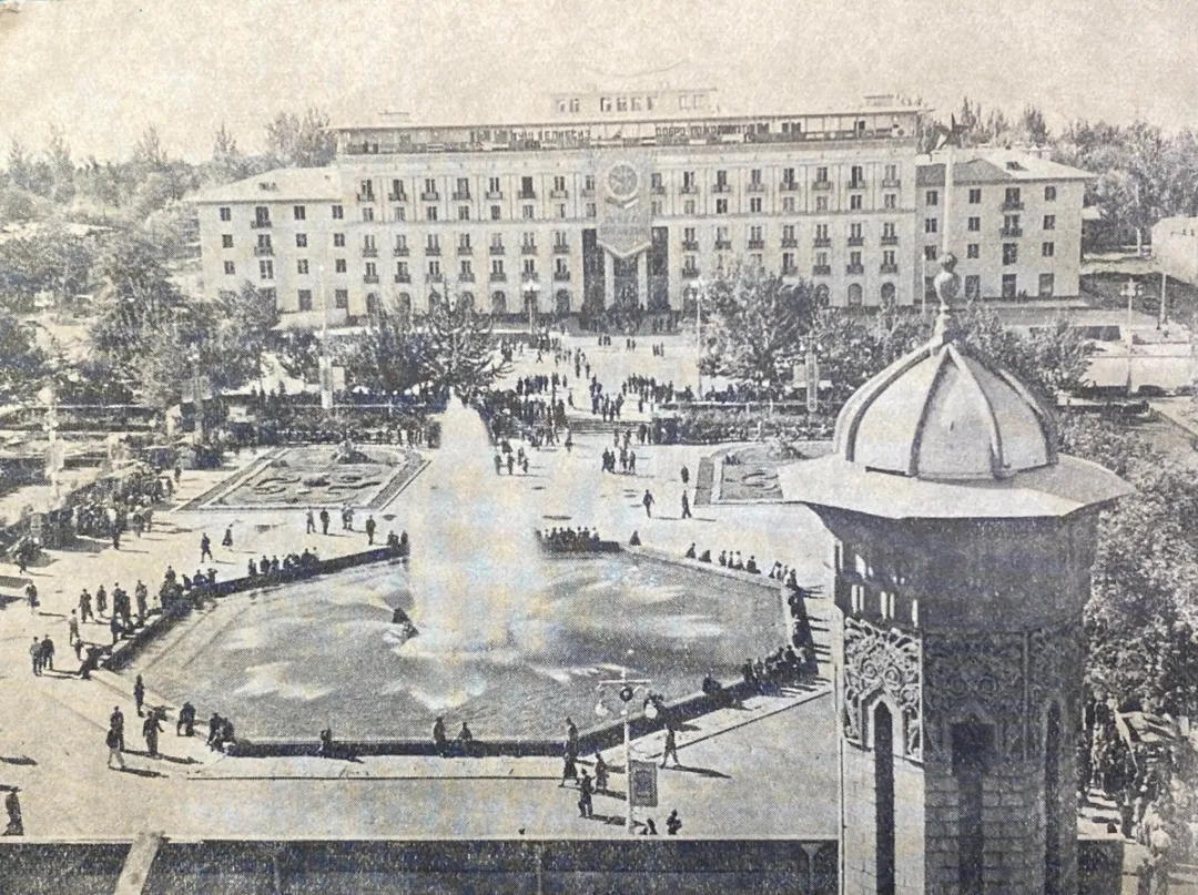 事實(shí)上,作家們所見(jiàn)到的城市布局,是戰(zhàn)后恢復(fù)建設(shè)過(guò)程中莫斯科和當(dāng)?shù)氐慕ㄔO(shè)者們不斷探索的產(chǎn)物:既要讓城市服務(wù)于生活和生產(chǎn),也要抵御沙漠、干旱和不期而遇的地震;要涵納烏茲別克獨(dú)特的民族形式,更要體現(xiàn)蘇聯(lián)最新的建設(shè)經(jīng)驗(yàn)。中國(guó)作家們不約而同地注意到在自己所下榻的酒店正對(duì)著會(huì)議主會(huì)場(chǎng)納沃伊劇院(Navoi Theater)。這座建筑于1948年4月落成,在亞非作家會(huì)議前特意進(jìn)行了翻修,被視作蘇聯(lián)的建設(shè)經(jīng)驗(yàn)在烏茲別克最經(jīng)典的本土化實(shí)踐之一。它使用了當(dāng)時(shí)最高標(biāo)準(zhǔn)的建設(shè)用料,實(shí)現(xiàn)了對(duì)社會(huì)主義建筑和本地民族風(fēng)格的完美融合,在劇院內(nèi)部,六個(gè)有著風(fēng)格各異的雕刻和裝飾的房間,分別代表著塔什干、撒馬爾罕、布哈拉、希瓦、費(fèi)爾干納和鐵梅茲六個(gè)主要地區(qū)。更有意味的是劇院的選址,在曾經(jīng)沙俄時(shí)代的沃斯克雷森斯基集市(Voskresenskii Market)之上,是劇院把這個(gè)“中世紀(jì)的糞坑”改造成一個(gè)流淌著噴泉的城市廣場(chǎng),同百貨公司和高檔酒店一起成為城市文化生活的中心街區(qū)[30]。