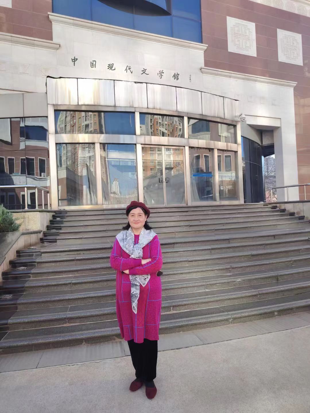 周蜜蜜在中國現(xiàn)代文學(xué)館前留影